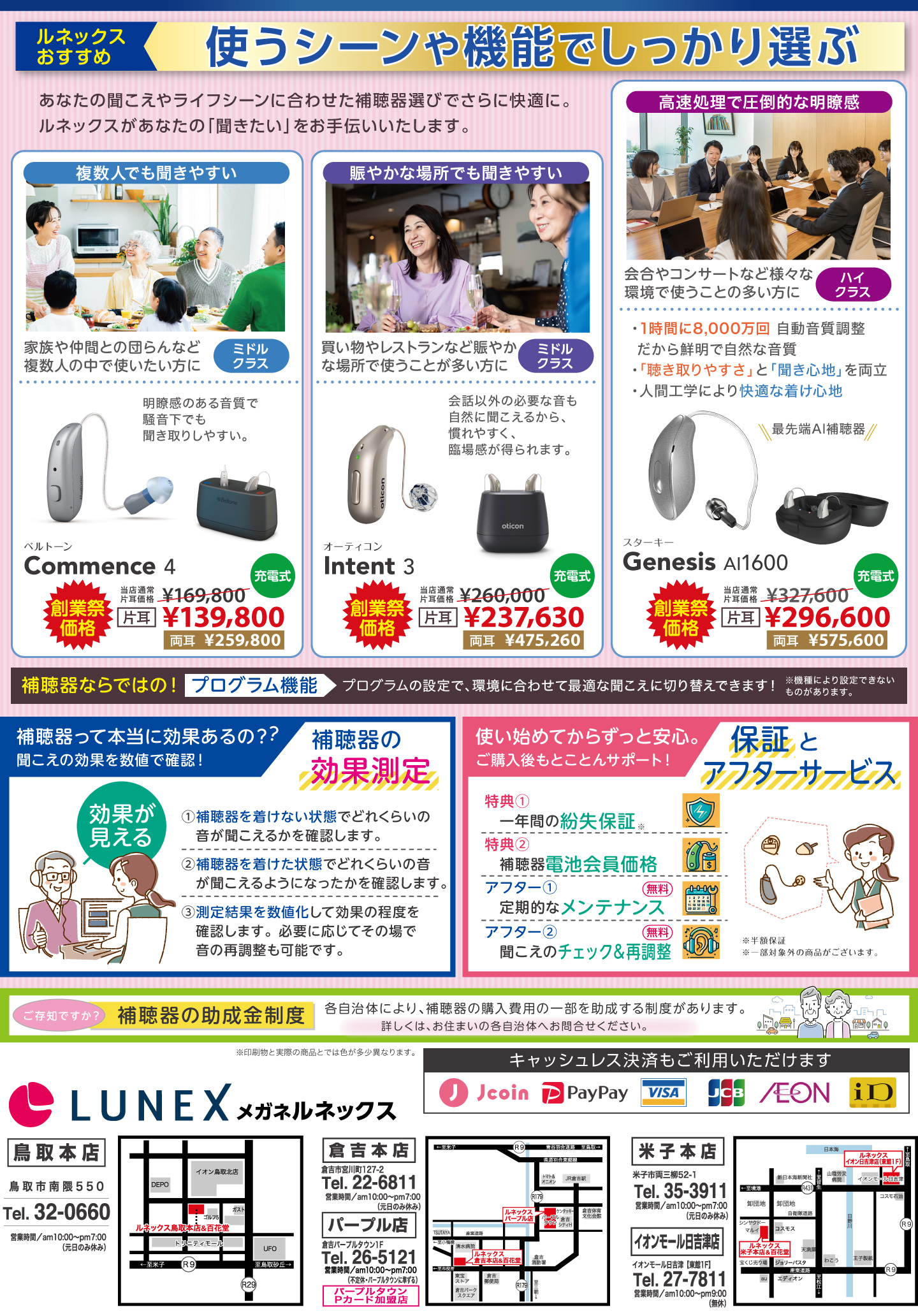 創業から54年にわたり培ってきた信頼と実績を基に、ルネックスは補聴器の提供だけでなく、購入後の安心までトータルでサポートいたします。